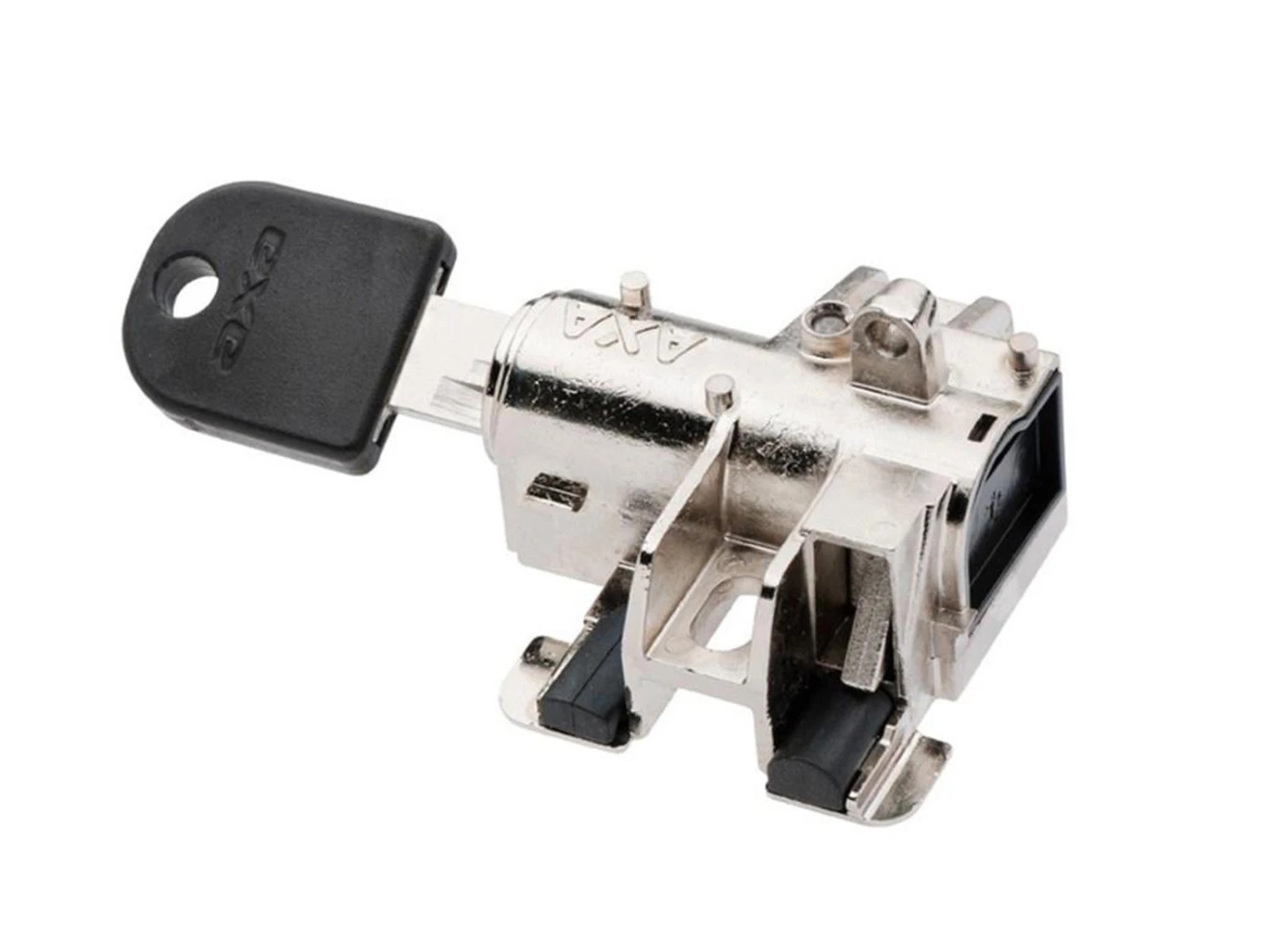 Detta batterilås från AXA är lämpligt för att låsa batteriet till E-cykeln Bosch, 2:a generationen.