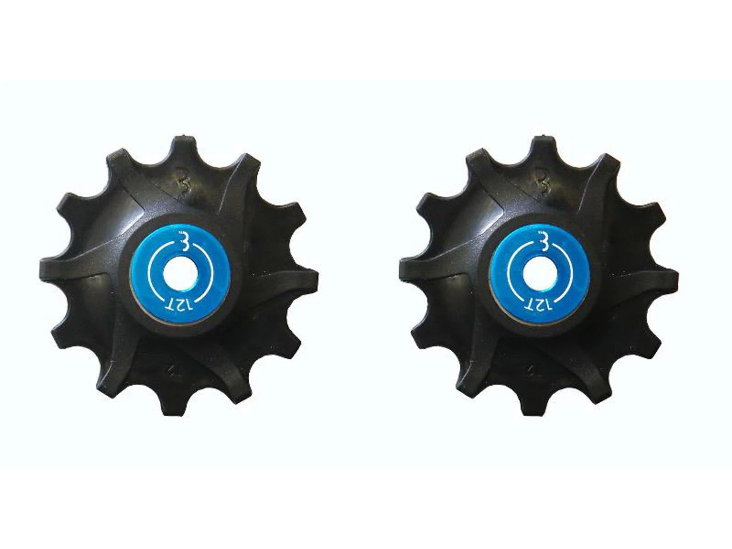 12 tandrullehjul från BBB till Sram bakväxlare. Med stängda lager. Remskivan är en sammansatt blandning av 40% glasfiber. Tändernas utformning gör att växeln är enkel och smidig