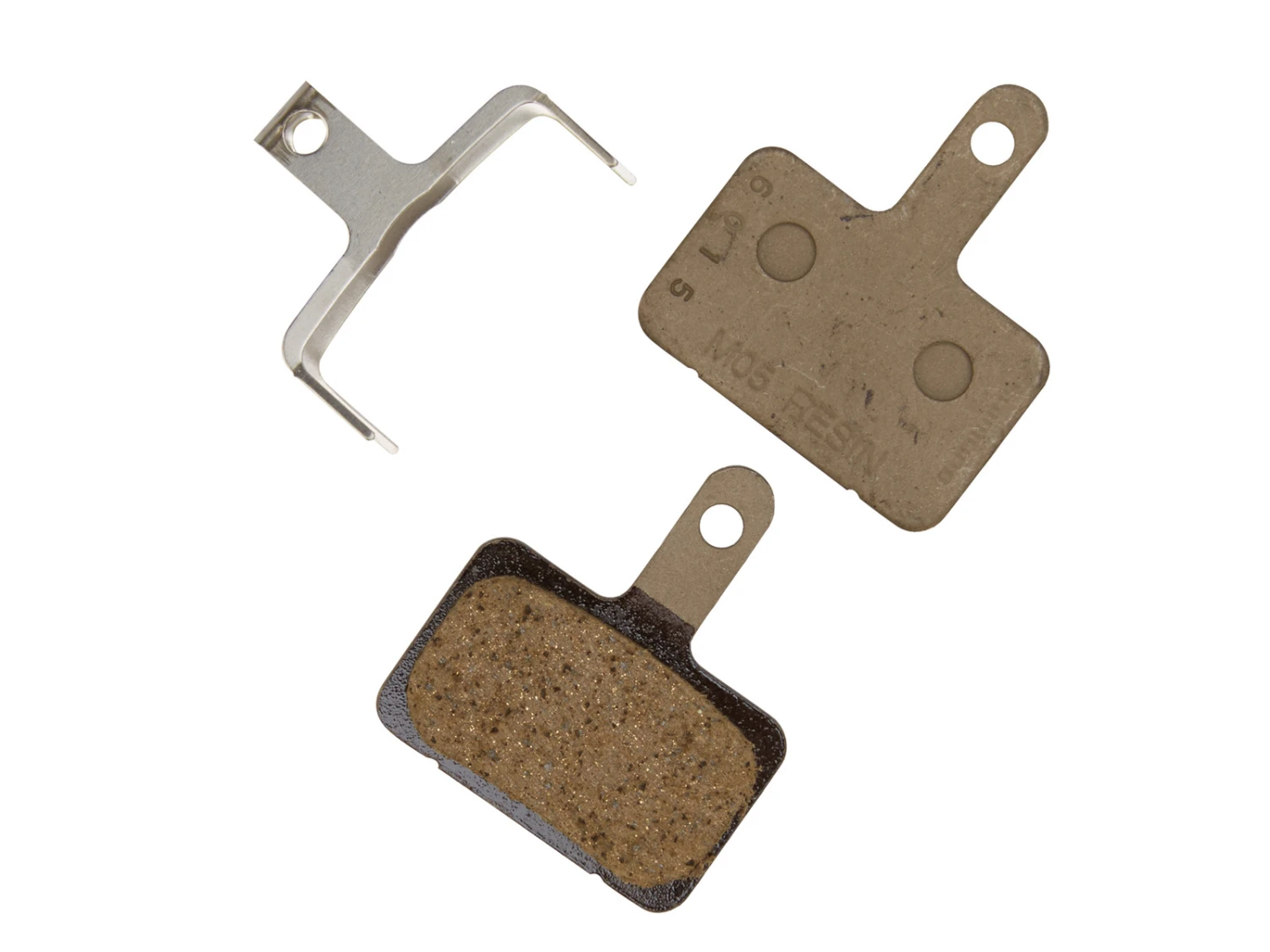 Shimano Disk Deore M05 Resin bromsklossar till fram- eller bakhjul. Inklusive clips. Till mekaniska skivbromsar.