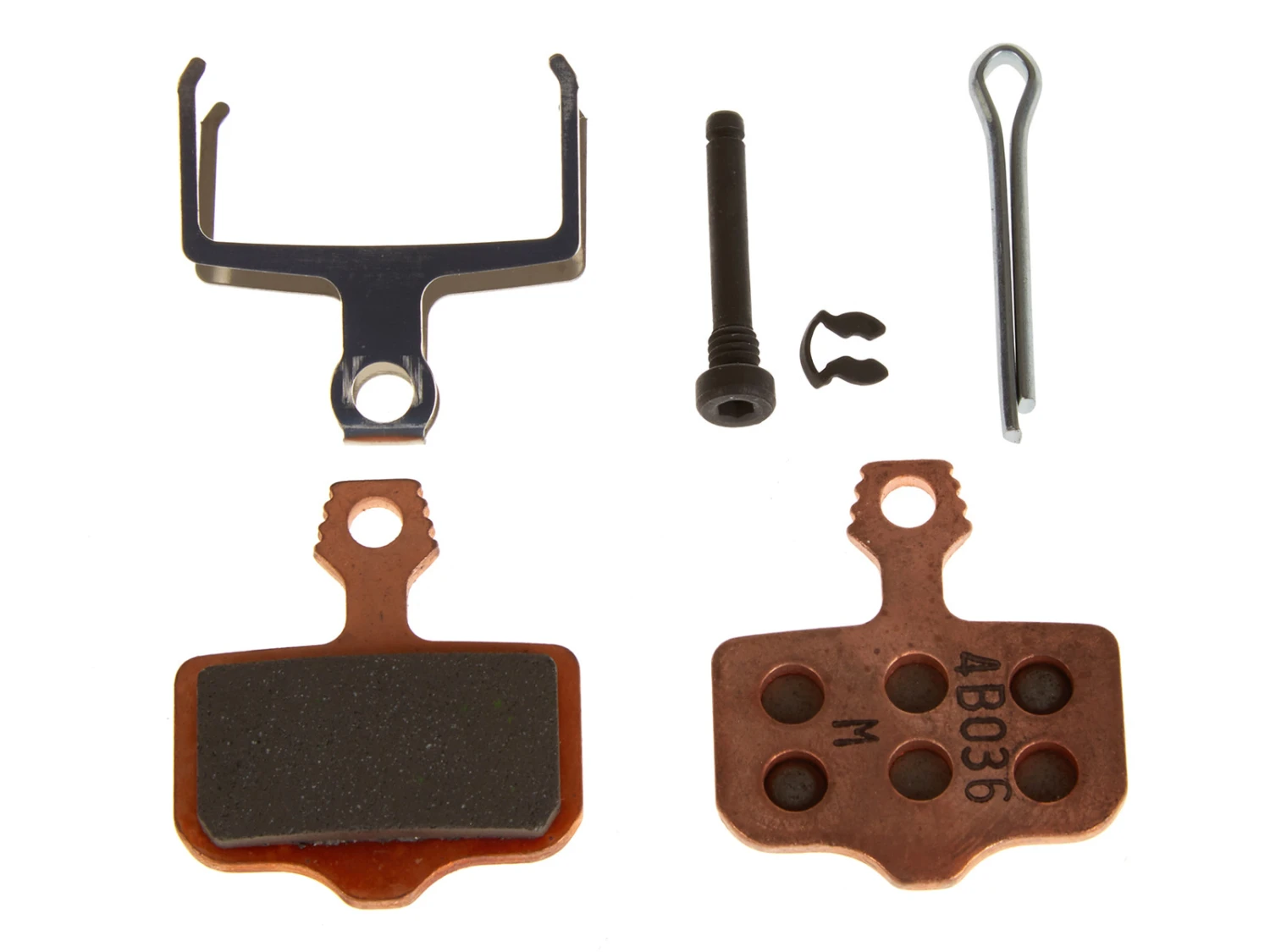 - Ett set bromsklossar, inklusive fjäder, splint och skruvar