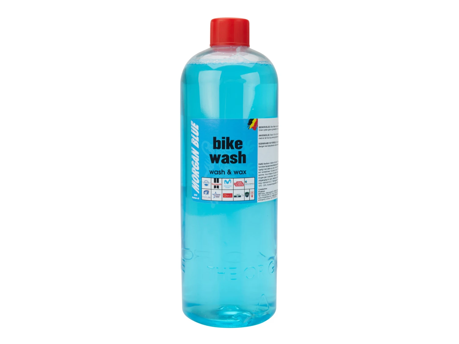 Morgan Blue Bikewash är ett cykeltvättmedel som både innehåller tvättmedel och vax. Det är en aktiv tvål som är speciellt utvecklad för att rensa cykeln. Utöver att rengöra cykeln så lägger vaxet en skyddande hinna på cykeln och får cykeln att skina.