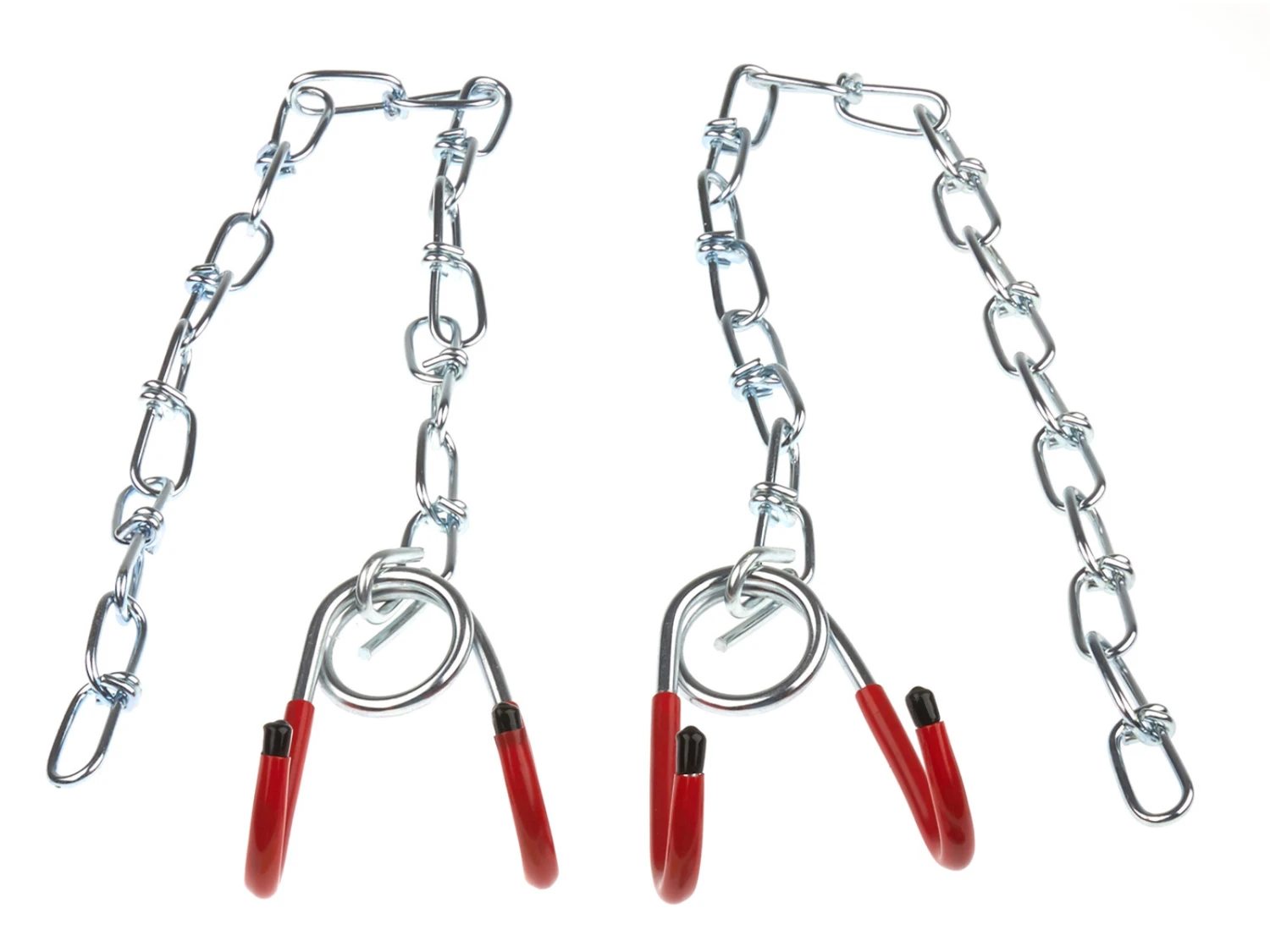 Till upphängning av cykel i taket. Cykelreparations-krokar med kedja. Kedjan är 50 cm lång och krokarna är 5 mm i diameter, samt täckta med gummi, så de inte repar din cykel.