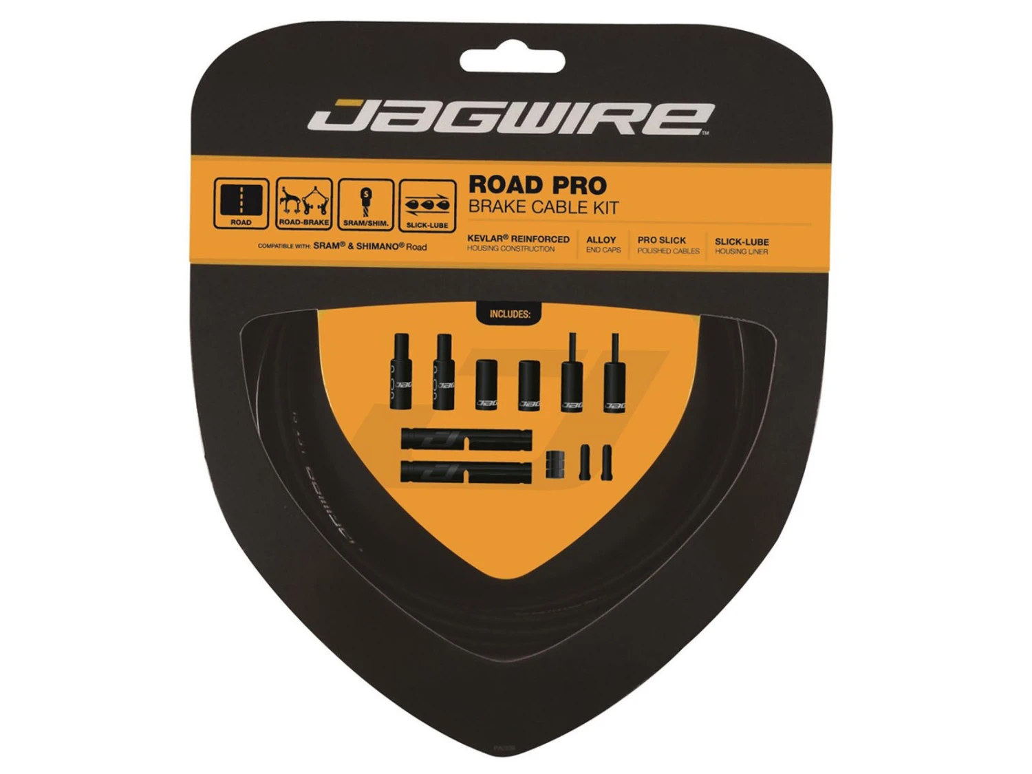 Denna Jagwire-bromskabeluppsättning är kompatibel med Sram och Shimano-komponenter och har en diameter på 5 mm. Satsen finns i flera olika färger, vilket gör det möjligt att utforma din cykel exakt som du vill.