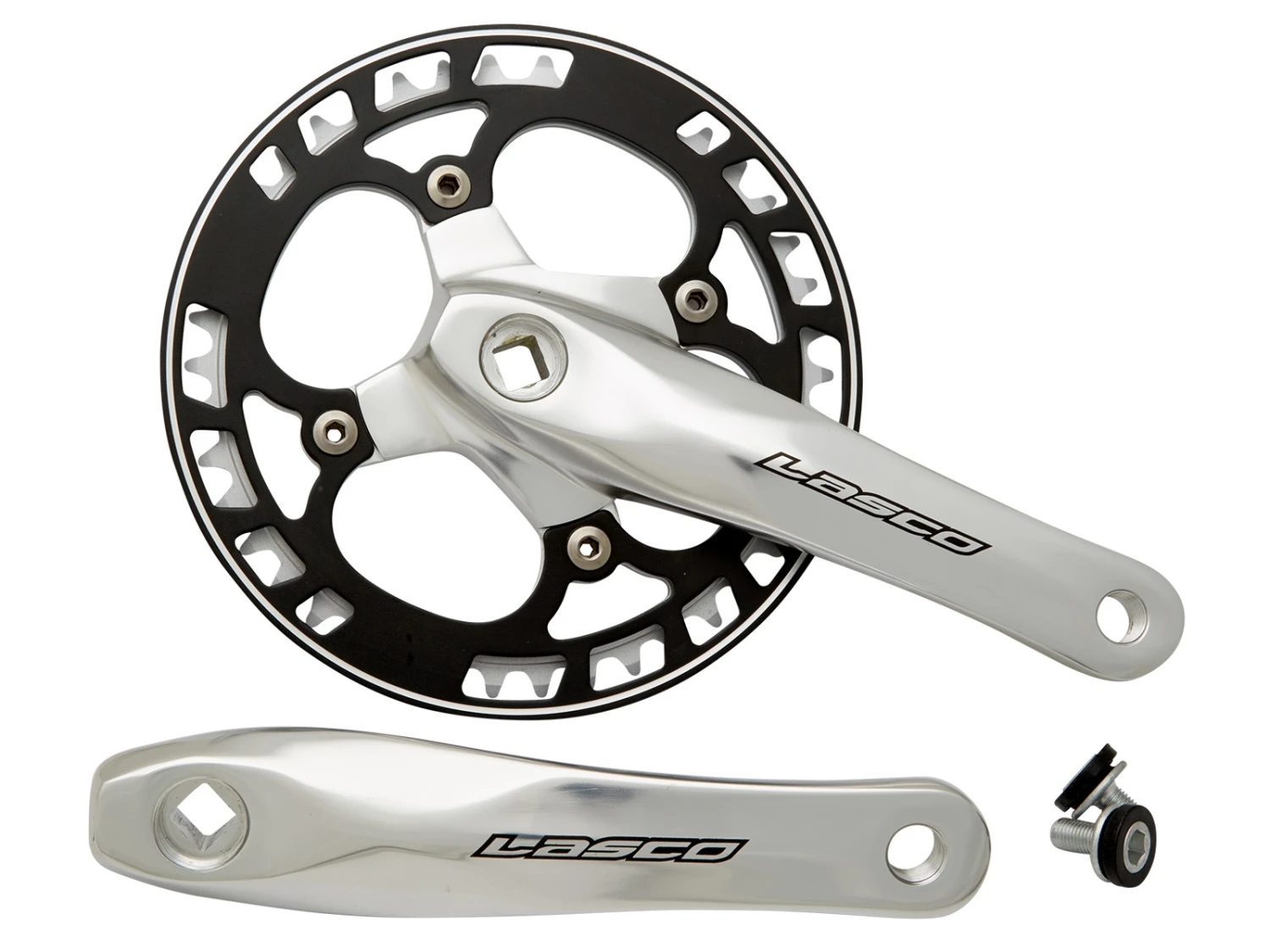 Du får en robust vevaxel med en hastighet från Lasco med enkelgjutna pedalarmar och utbytbart blad. Satsen har också ett kedjeskydd så att du inte får benet i kedjan. Vevstället har fördelen att vara styvare och ger en bättre kraftöverföring än de flesta andra vevsatser. Därför är detta vevsats standard på ett stort antal danska cykelmärken; Bland annat. Centurion, MBK och Nishiki. Vevaxeln består av höger och vänster pedalarm och växel / blad.