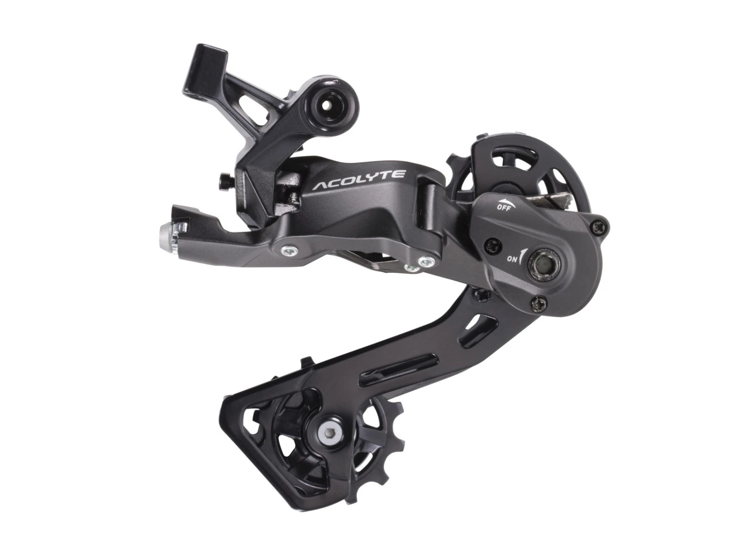Denna Microshift Acolyte bakväxel med fjäderlåssystem används tillsammans med Microshift Acolyte 8-växlar och kan användas med Shimano eller Microshift kassetter. Bakväxelns kapacitet är mitt 11- eller 12-kuggsblad på kassettens ytterkant och max 42-46 tänder på kassettens största kugg.