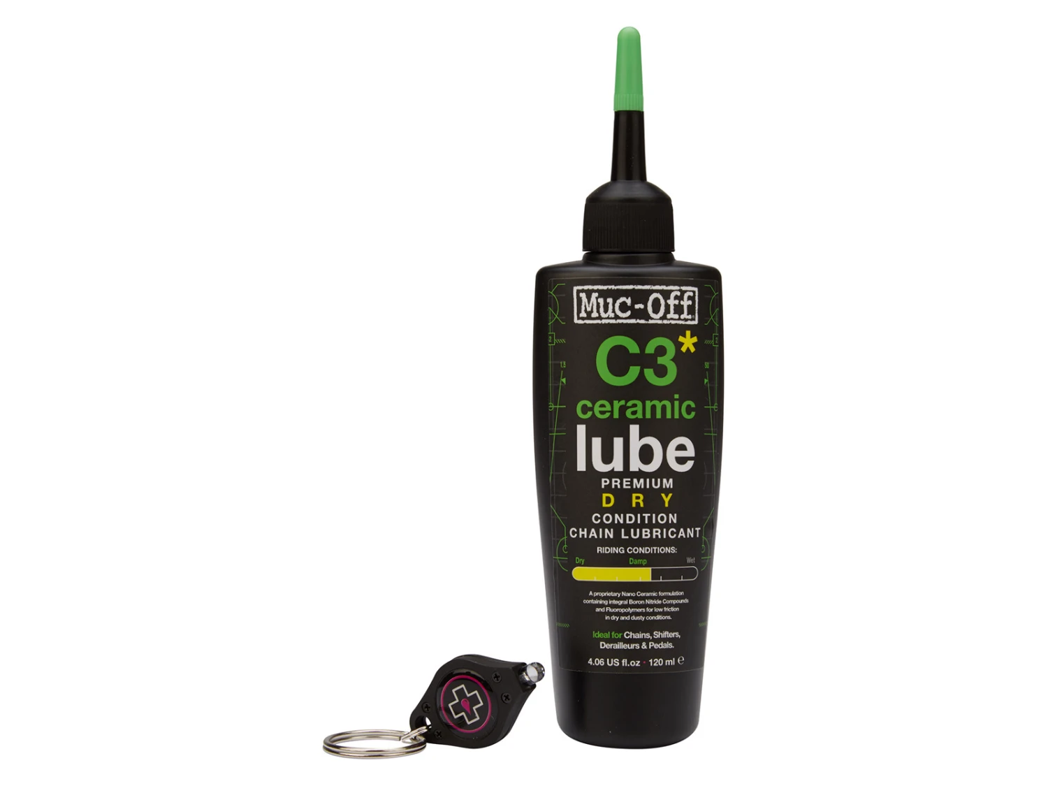 Muc-Off C3 Ceramic Torr kedjeolja, är en smörjolja med låg friktion. Den kan inte bara användas på kedjan, utan även på cykelns andra rörliga delar och är speciellt bra för långa distanser. Muc-Off har en unik sammansättning som ger en fantastisk smörjförmåga och effektivitet.