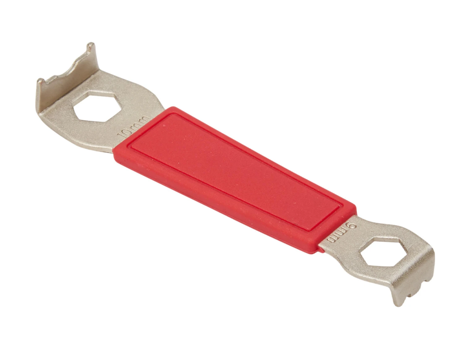 Denna OnGear skiftnyckel för bladbultar ger bra grepp. Nyckeln har en kant på sex millimeter och passar både 9 mm och 10 mm bultar.