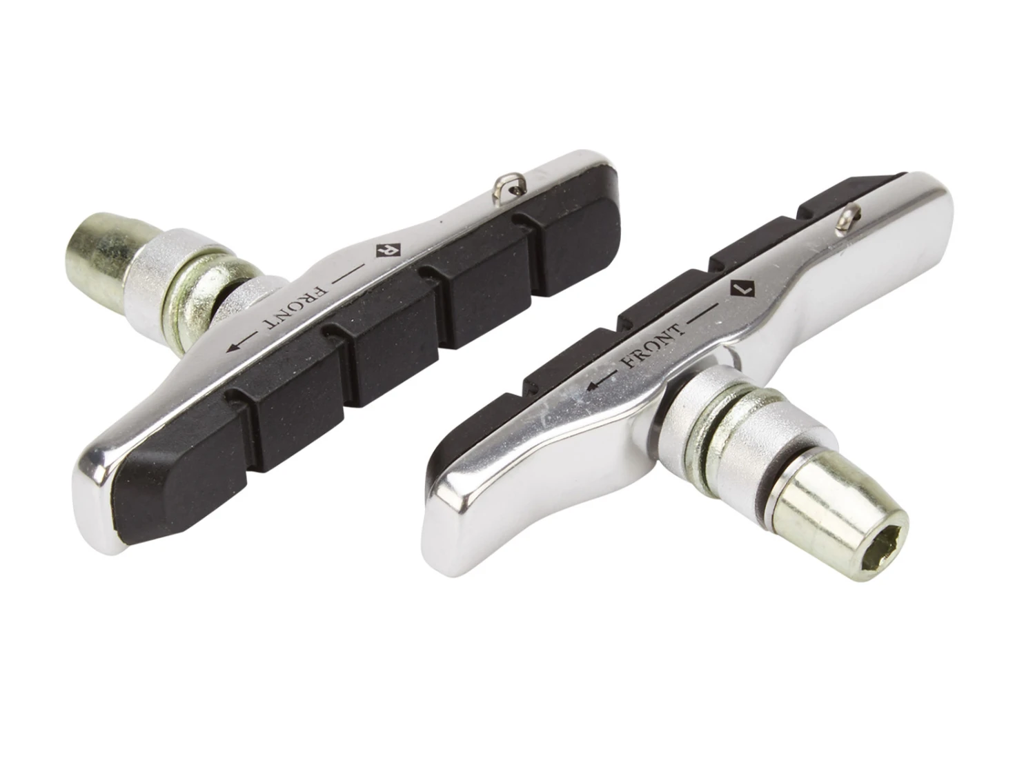 Denna uppsättning bromsskor från OnGear har utbytbart bromsgummi med hög slitstyrka. Du kan använda bromsbackarna på bromsklor från många olika märken. Bland annat Shimano, Avid, Point, XLC, Tektro och Bike Attitude. Satsen består av 2 kompletta bromsskor med alla skruvar och brickor du behöver för montering.