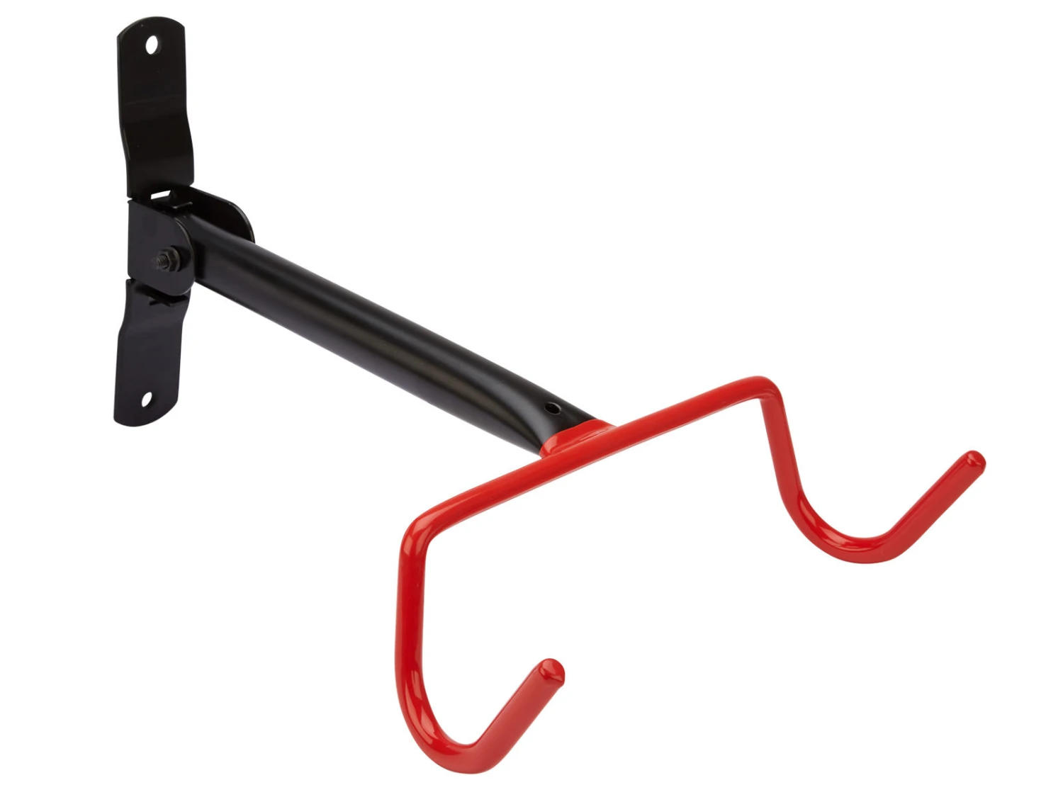 Med denna robusta cykelupphängning från OnGear blir det enklare att montera cykeln i garaget, boden eller hemmet. Väggfästet har gafflar som kan tippas upp så att de ligger plant med väggen när cykelupphängningen inte används.