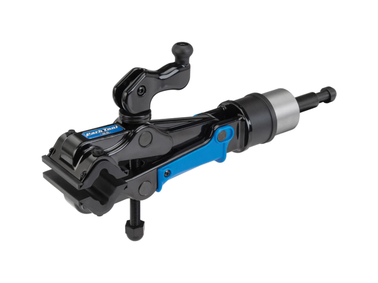 Denna klämma kan användas för flera olika arbetsverktyg från Park Tool. Modellen är av professionell kvalitet och kan därför användas för både cykelverkstäder och hemmabruk. Käken är lämplig för användning på ramar från 23-76 mm. och kan enkelt användas för flygrör. Käken är 7 cm. bred.