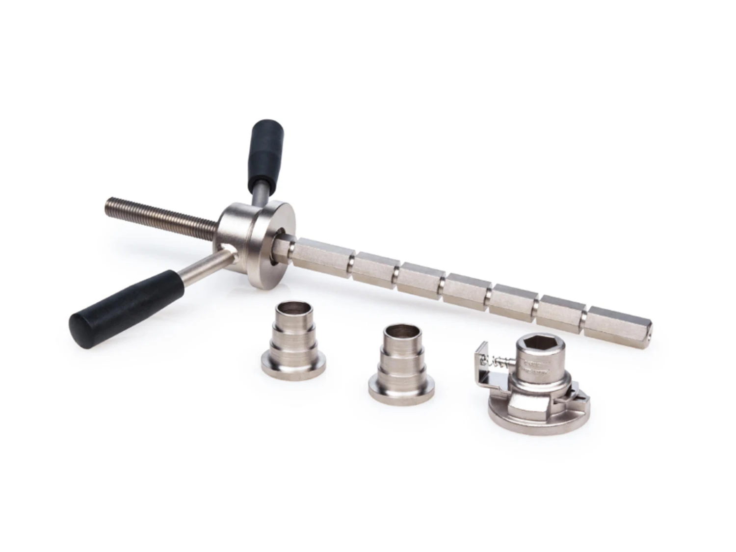 Detta pressverktyg är det perfekta verktyget för montering av styrbeslagskott i kronrör, samt för pressning av vevlager i förberedda typer. Modellen har en extra lång stav på 30 cm. vilket gör det lämpligt för de längre kronrören.