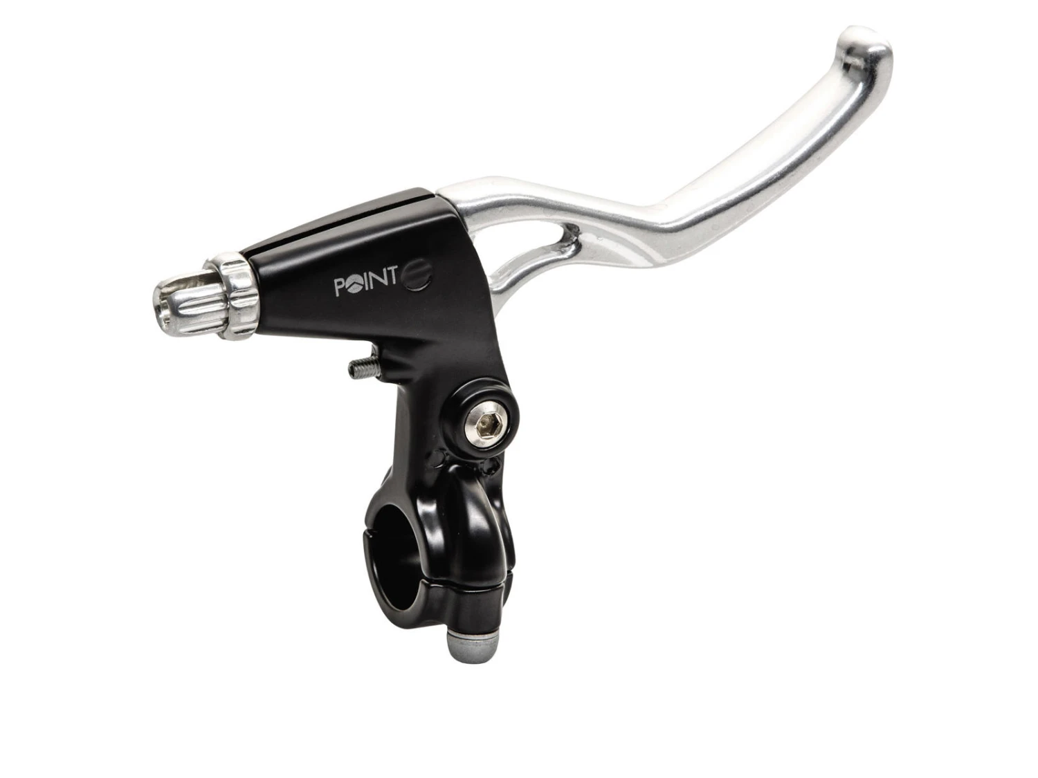 Detta punktbromshandtag kännetecknas av att det kan användas både på höger eller vänster sida av styret. Bromsspaken är också utrustad med en öppen klämma, som gör att den kan monteras på styret utan att behöva ta bort handtaget och växlarna. Bromshandtaget har ett 3-finger grepp och är alltså avsett för V-broms och mekaniska skivbromssystem. Bromsspakssatsen är av riktigt bra kvalitet och den är skapad med returfjäder i bromsspaken och dessutom ingår kabeljusteringsskruvar och bromsspaken.