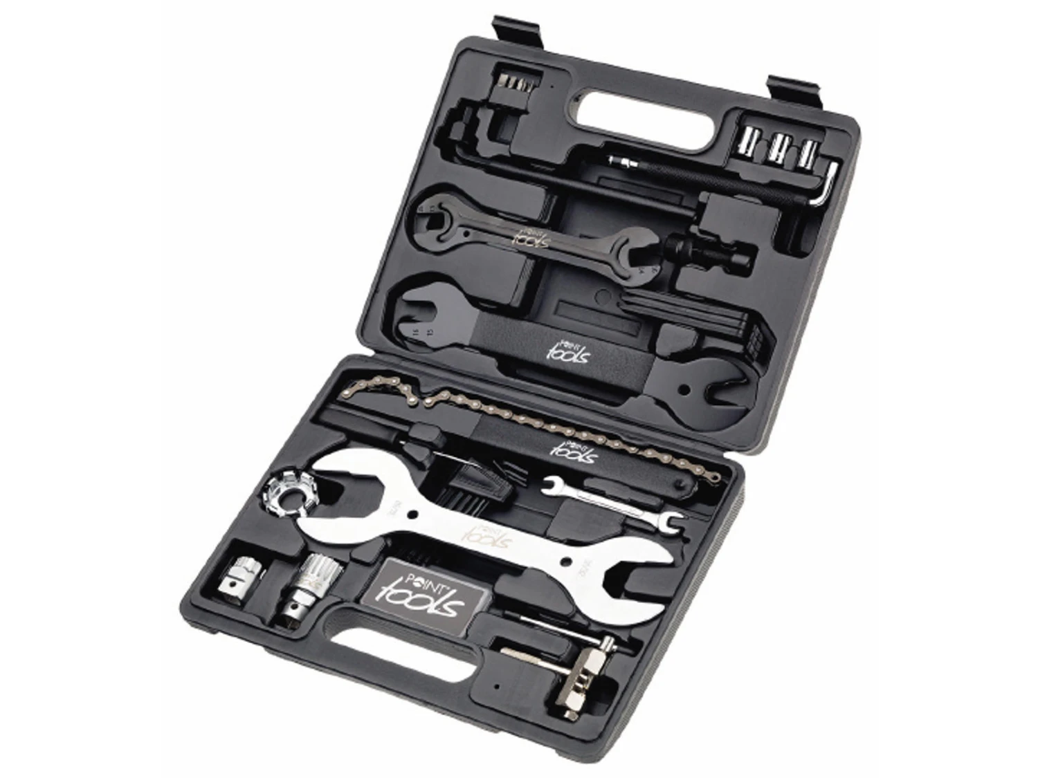 Point ger dig här ett set med cykelverktyg, till den engagerade gör-det-själv-människan, som vill bara helt förberedd på att underhålla samt reparera sin cykel. Setet med cykelverktyg innerhåller alla nödvändiga delar.