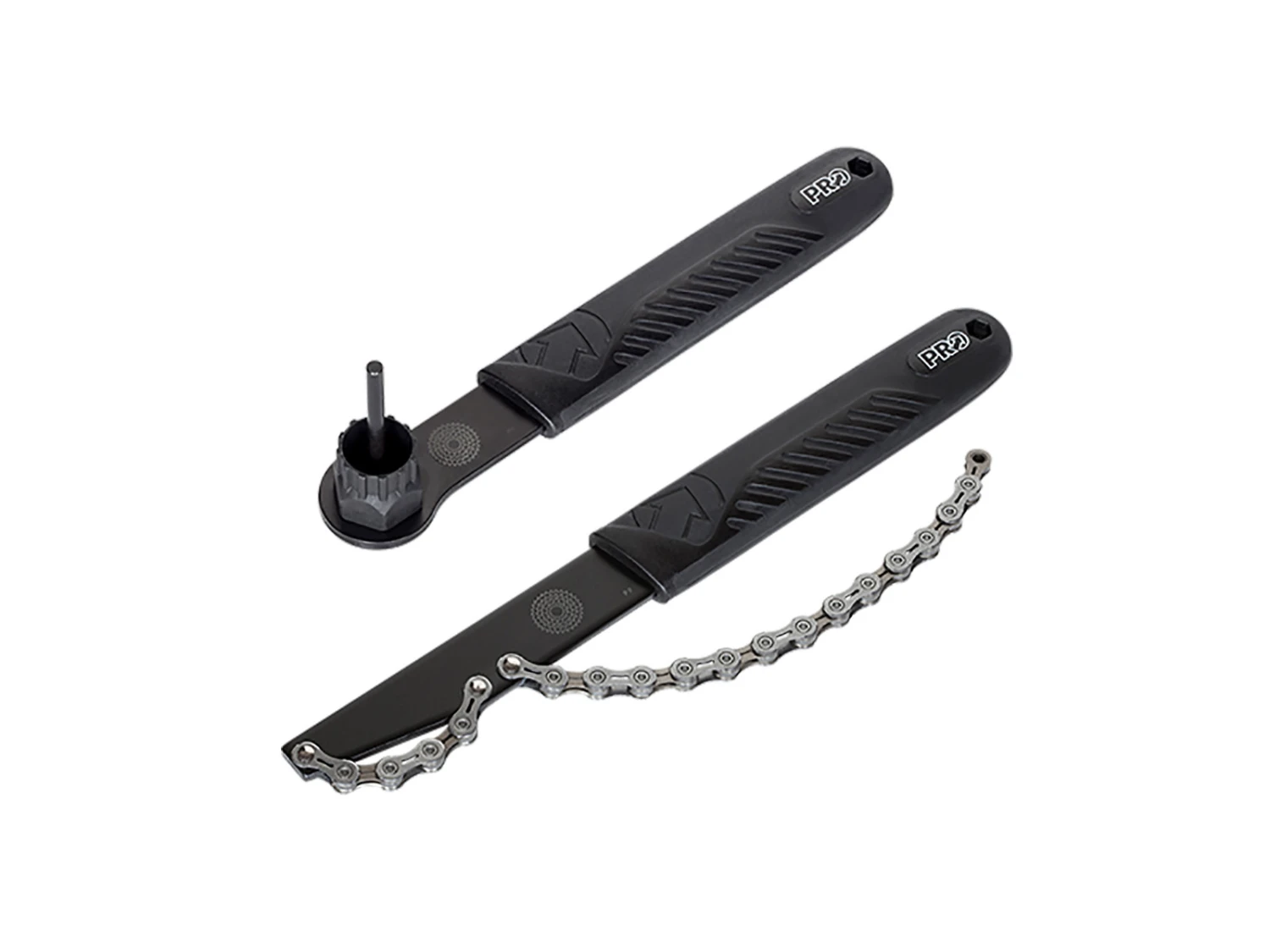 För att lösgöra låsringen (Lock Ring) på kassetten ska dessa verktyg användas. Den ena för att hålla kassetten med och den andra till själva låsringen.