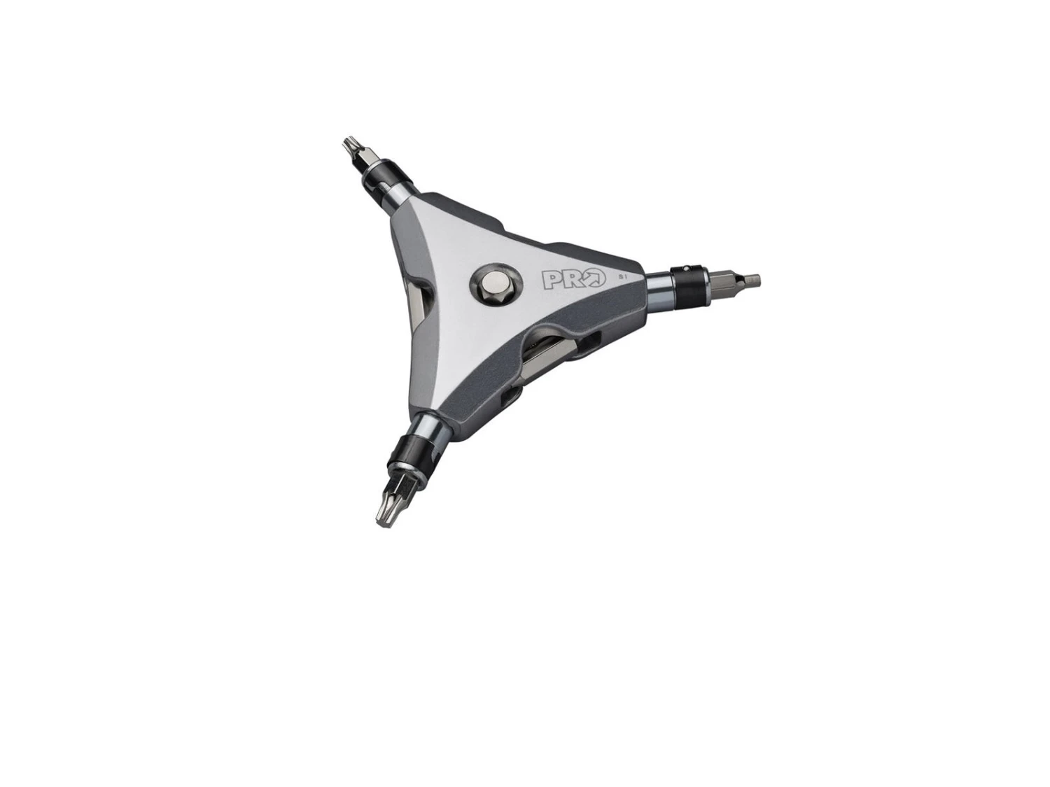 Skiftnyckeln innehåller PH2 och SL3 skruvmejslar, Unbrako bits i storlekarna 2, 2,5, 3, 4, 5 och 6, Torx bits i storlekarna T20, T25, T30 och T40.