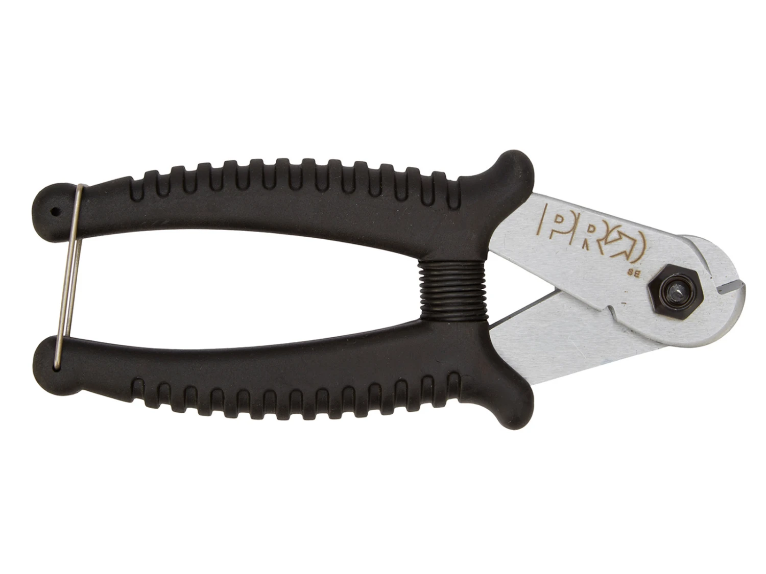 För att säkerställa en rak skärning bör professionella verktyg användas. Denna kabel- och trådsax ger ett rent snitt vid klippning av kugghjul eller bromsvajer samt extern kabelstrumpa antingen för bromsar eller för växlar.