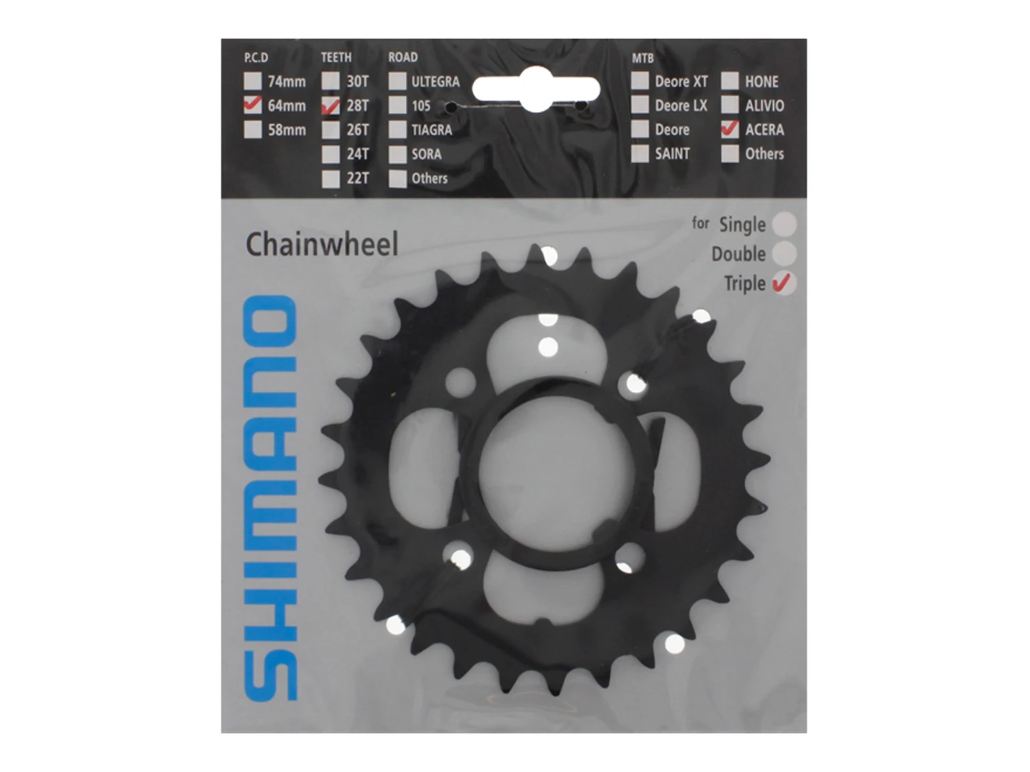 Det 28 tandbladet har utvecklats för Shimano Acera trippelvevsmodell FC-M361 som det innersta läget och i kombination med 7 eller 8 kugghjul med kugghjul.