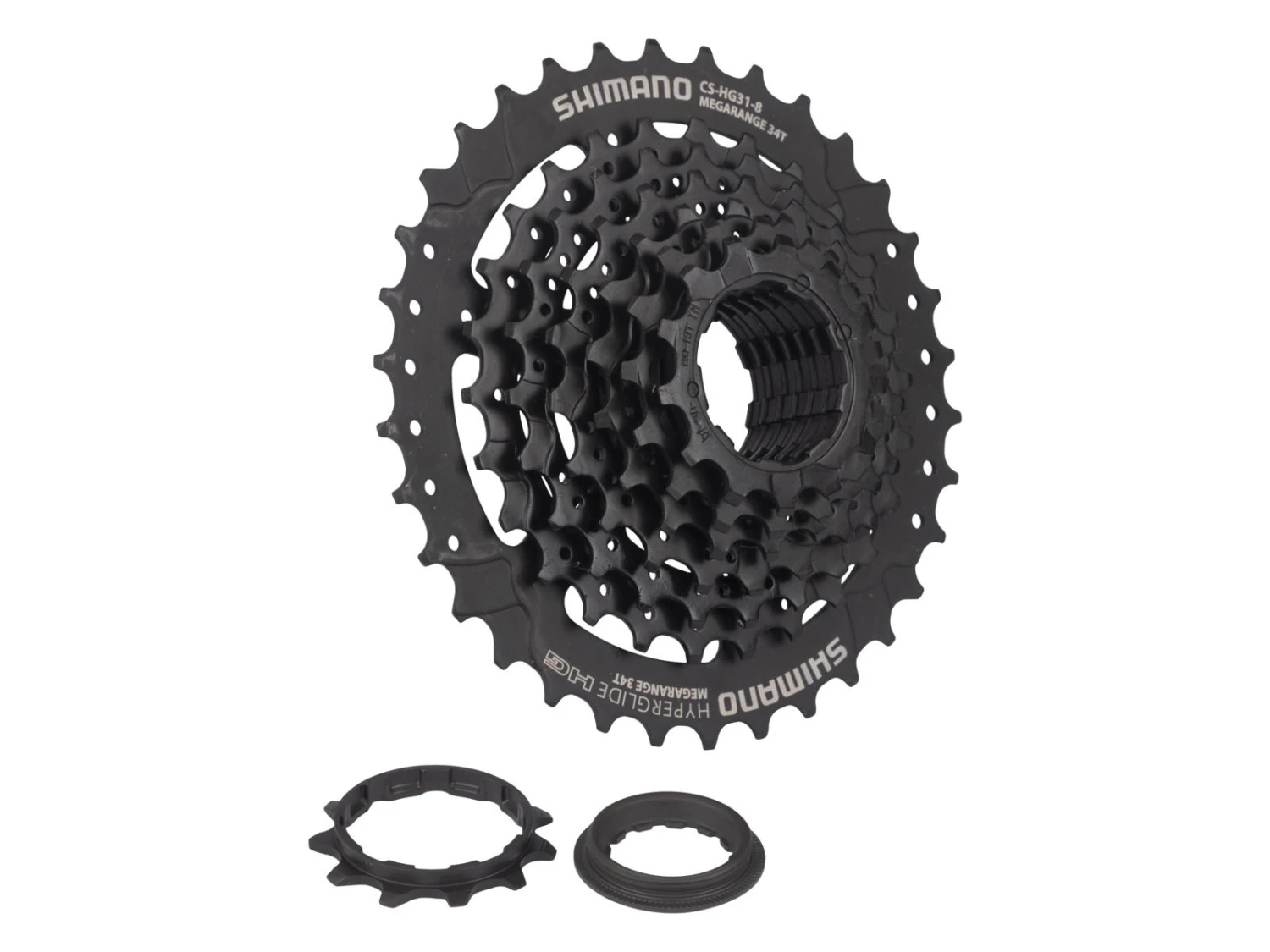 Denna Shimano Altus 8 växlars kassett har en tandkombination från 11 tänder upp till 34 tänder.