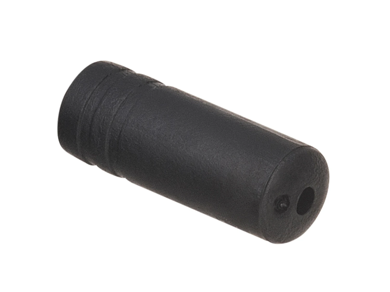 Svart plastbussning från Shimano. Denna ursprungliga ändbussning har en inre diameter på 4 mm och passar därmed perfekt med utvändiga kablar.