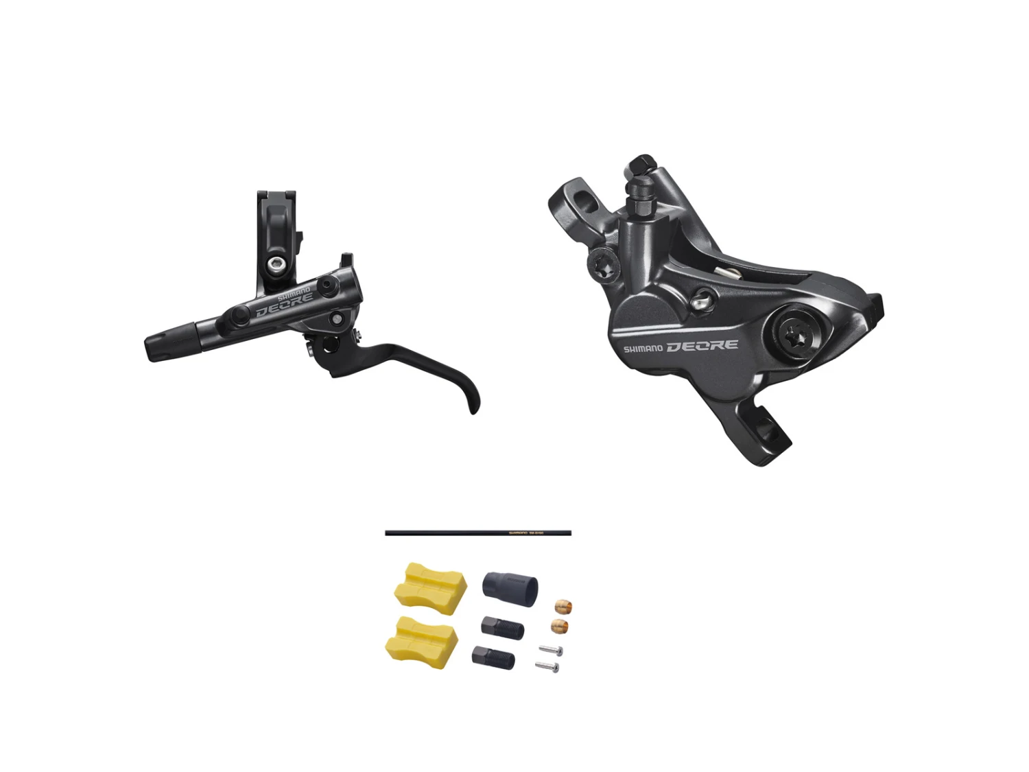Denna 4-kolv Shimano Deore hydrauliska bromssats är lämplig för mountainbike-, vandring- och längdcykelcyklar. Satsen är avsedd för montering på vänster sida av styret och som främre bromssats.