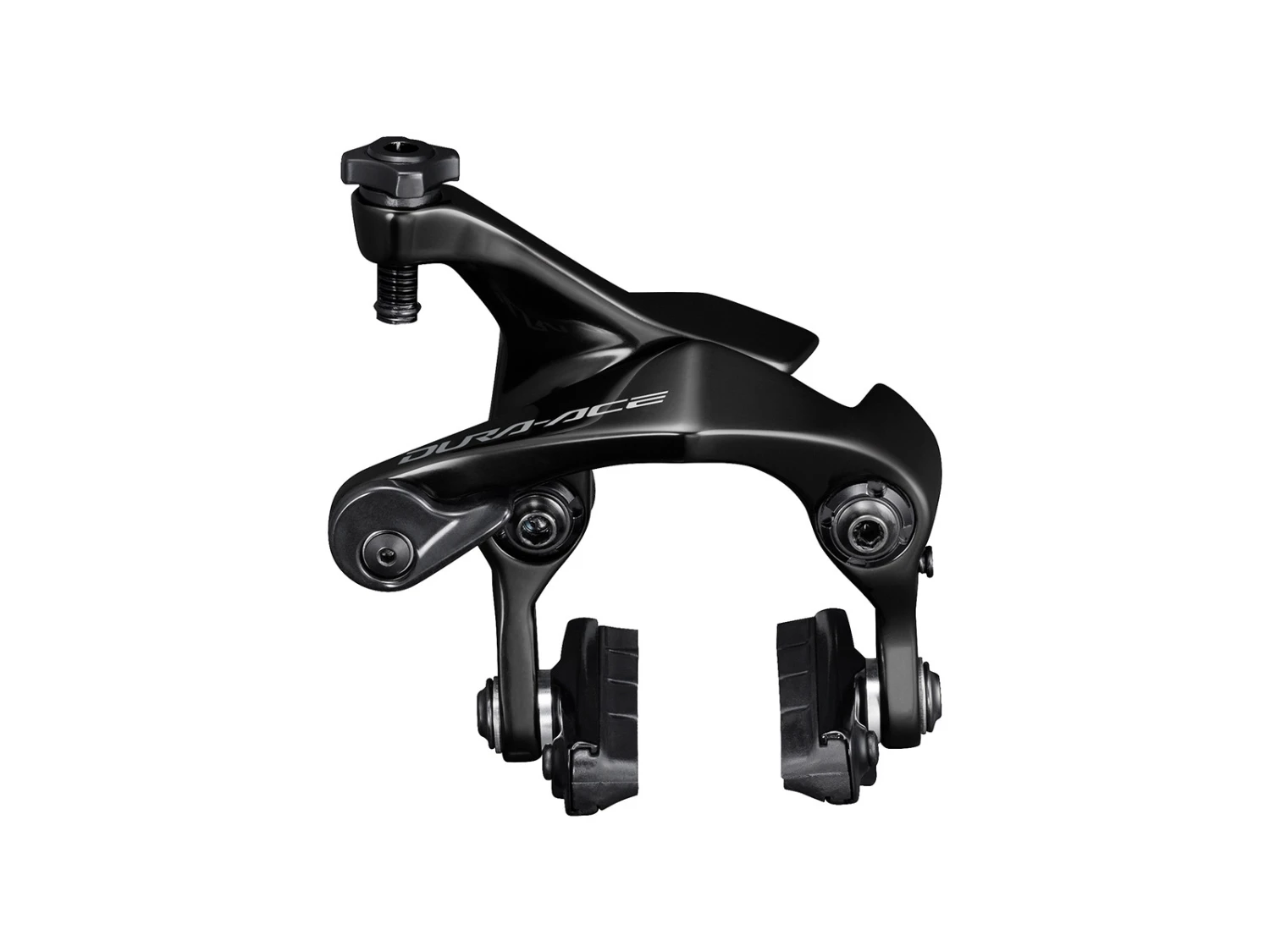 Denna Shimano Dura Ace bromsok tillhör komponenterna i Shimano 12 -växlar och används för landsvägscyklar. Bromskloen är för 2 bultar och monterad på cykelns bakgaffel.