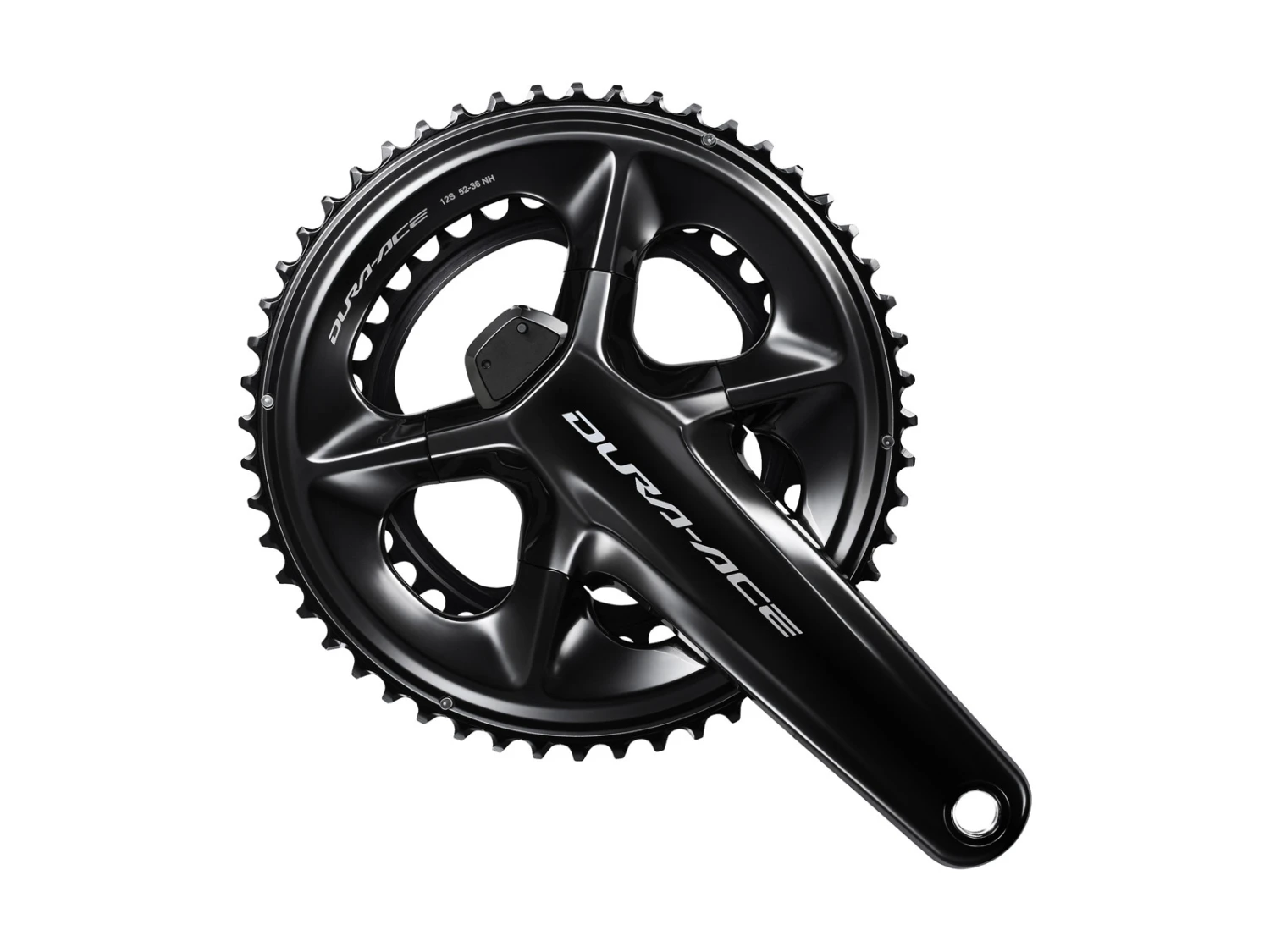 Denna Shimano Dura Ace Powermeter -vevparti har 175 mm pedalarmar utan blad. vevsetet tillhör växelkomponenterna Shimano 12 och används för landsvägscyklar. Observera att blad måste köpas separat.