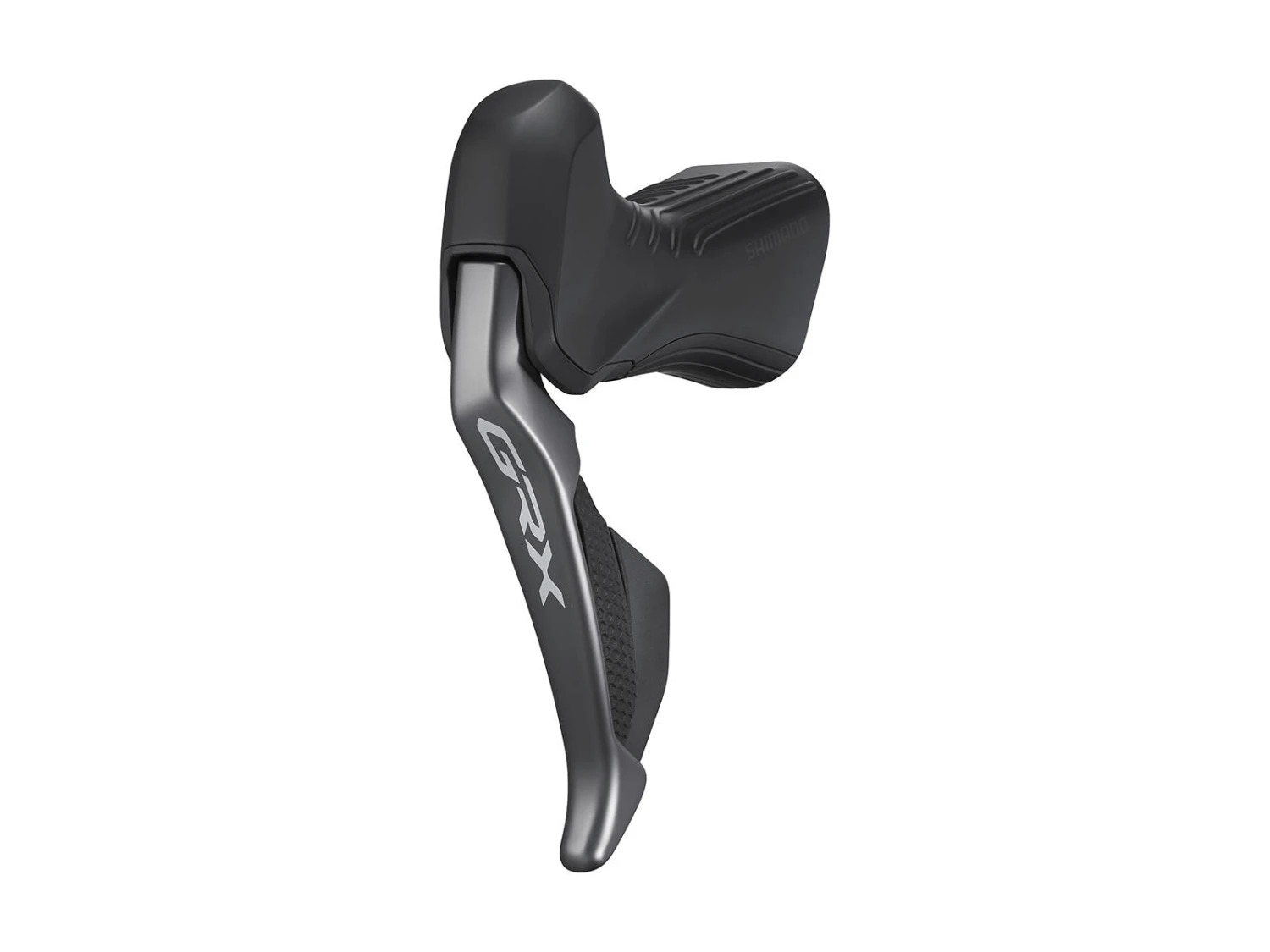 Från toppen av Shimanos GRX-komponentgrupp till gravel-cyklar får du här ett elektroniskt Di2 växel- och bromsreglage modell ST-RX815. Greppet är utvecklat till cyklar som har dubbelt vevparti och använder hydrauliska skivbromsar.