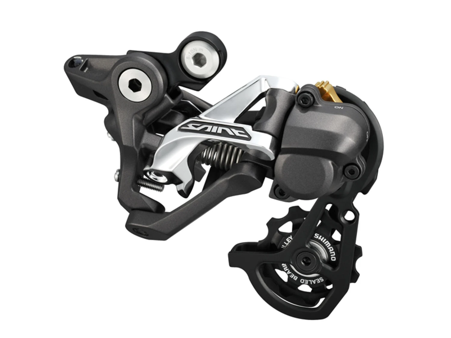 Bakväxeln är designad för Trail och Downhill med 1 x 10 växlar. Denna typ av bakväxel är utformad uteslutande för mountainbike, downhill och trail cyklar. Bakväxeln är utrustad med en speciell Shadow RD + -funktion som ger kedjan mer lugn och stabilitet under körning. Shadow RD + aktiveras helt enkelt genom att vrida en liten knapp på den bakre växeln, detta ger den bakre växeln bättre stabilitet, bättre växelväxling och dessutom är kedjan lugn under körning även under extrema förhållanden. Sist men inte minst hjälper den här funktionen till att stabilisera kedjan rörelser på kedjehjulet framför vevsatsen. Först när bakhjulet måste tas bort är det nödvändigt att vrida tillbaka ratten till neutralläget.