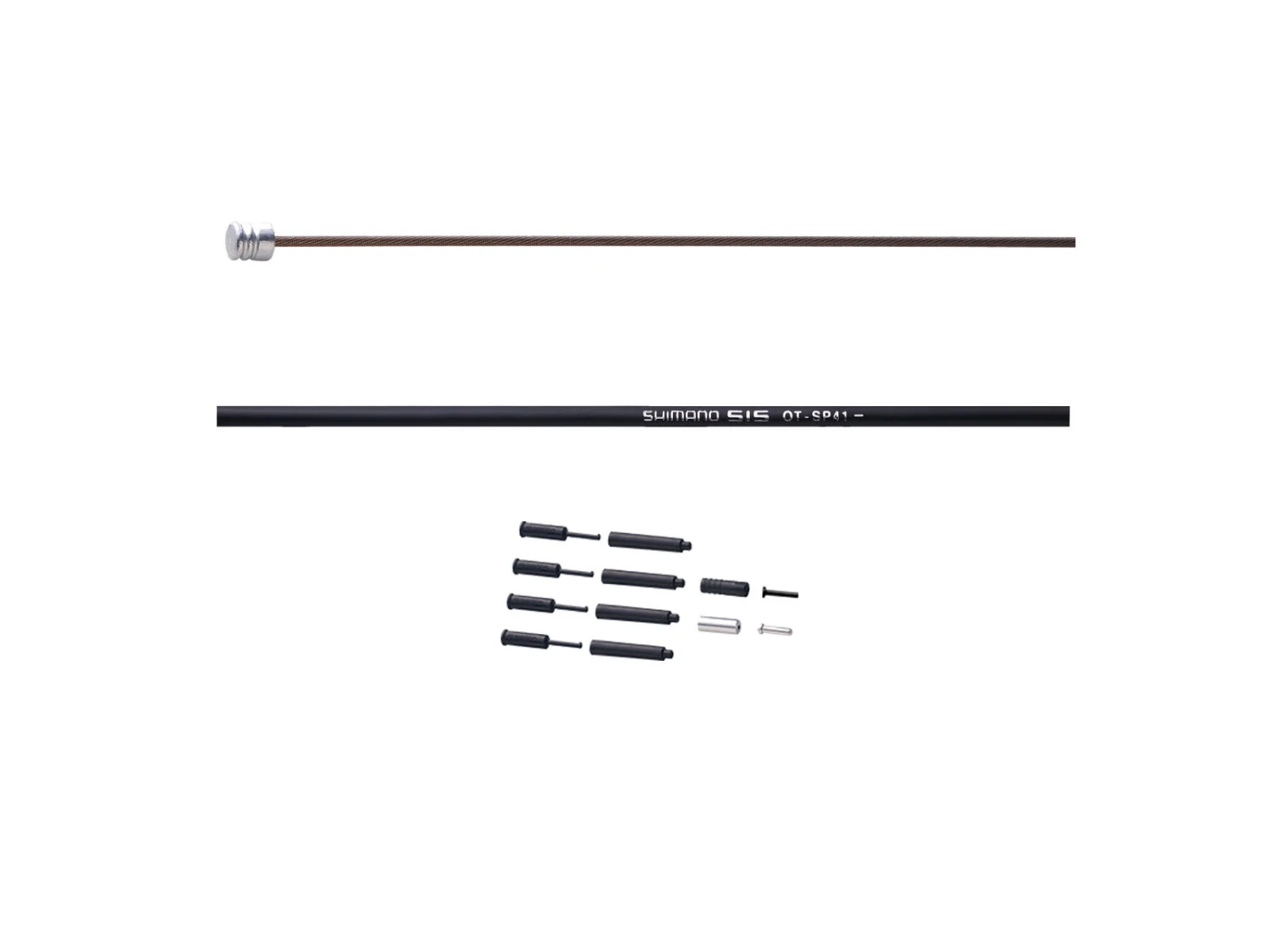 Komplett växelkabeluppsättning som används för mountainbike med Shimano-växelkomponenter. Rostfritt stål inre tråd och svart ytterkabel av typ SP41.