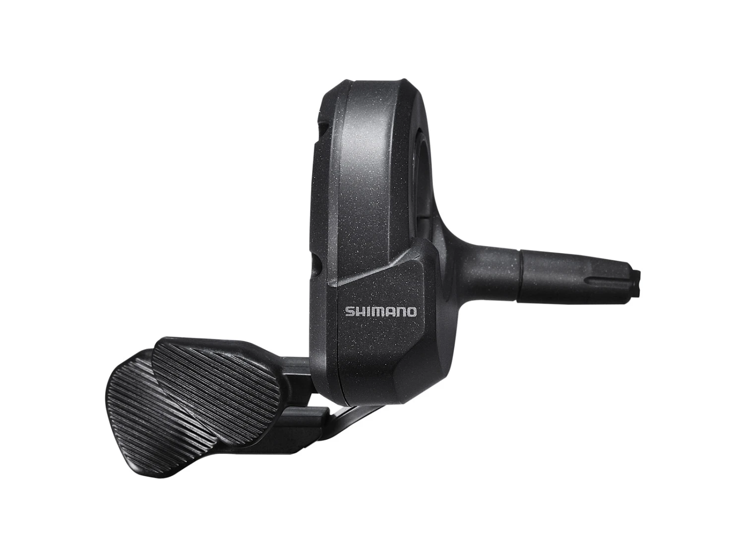Här får du en original Shimano reservdel. Denna omkopplare är avsedd för en elektronisk växellåda på en elcykel med Shimano Steps systemmodell E-8000. Växelomkopplaren är utformad för att monteras på vänster sida av cykelstyret.