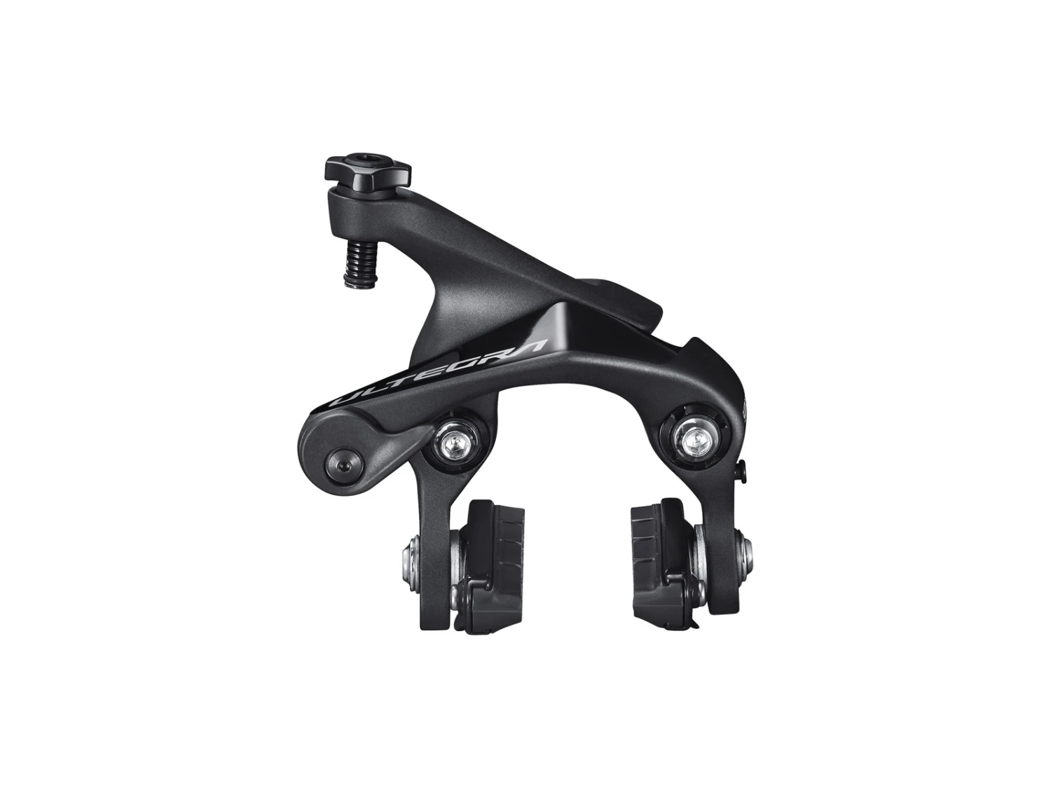 Denna Shimano Ultegra bromsok tillhör komponenterna i Shimano 12 -växlar och används för landsvägscyklar. Bromskloen har 2 bultar och är monterad på cykelns bakgaffel.