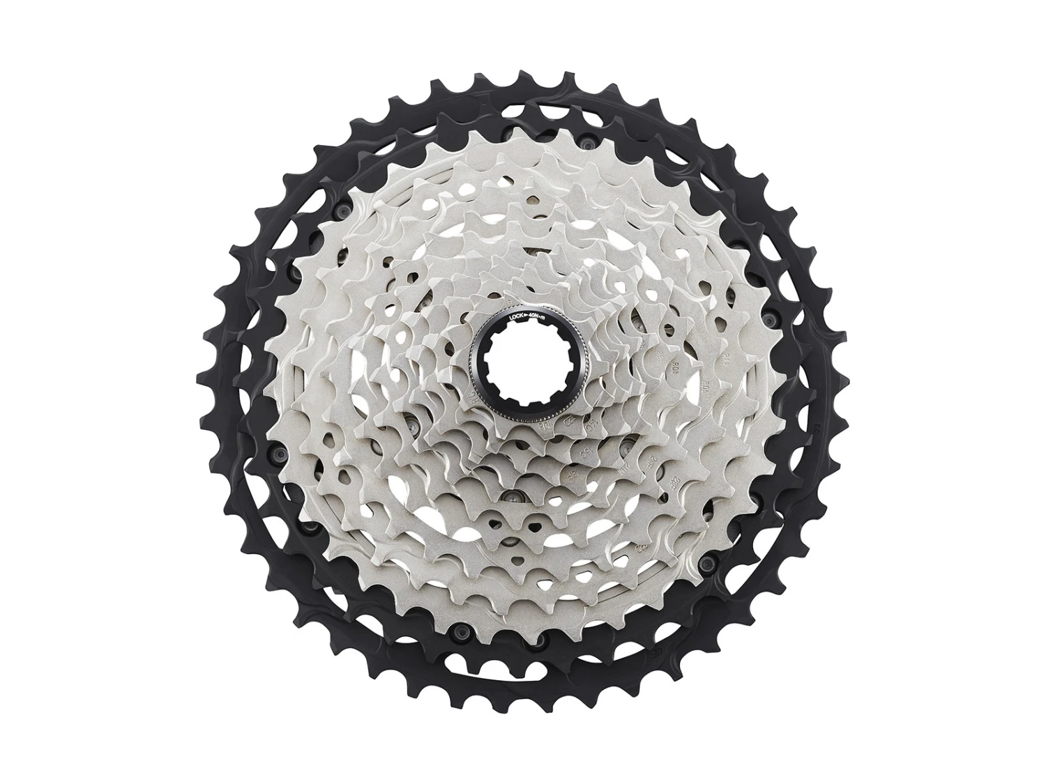 Från Shimanos XT-komponentserie, som är företagets näst bästa inom MTB, får du här en mycket bra M8100-kassett till 12 växlar. Kassetten kan användas med både 1 x 12 och 2 x 12 växlars system och har drev med ett spänn från 10 tänder upp till 45 tänder.