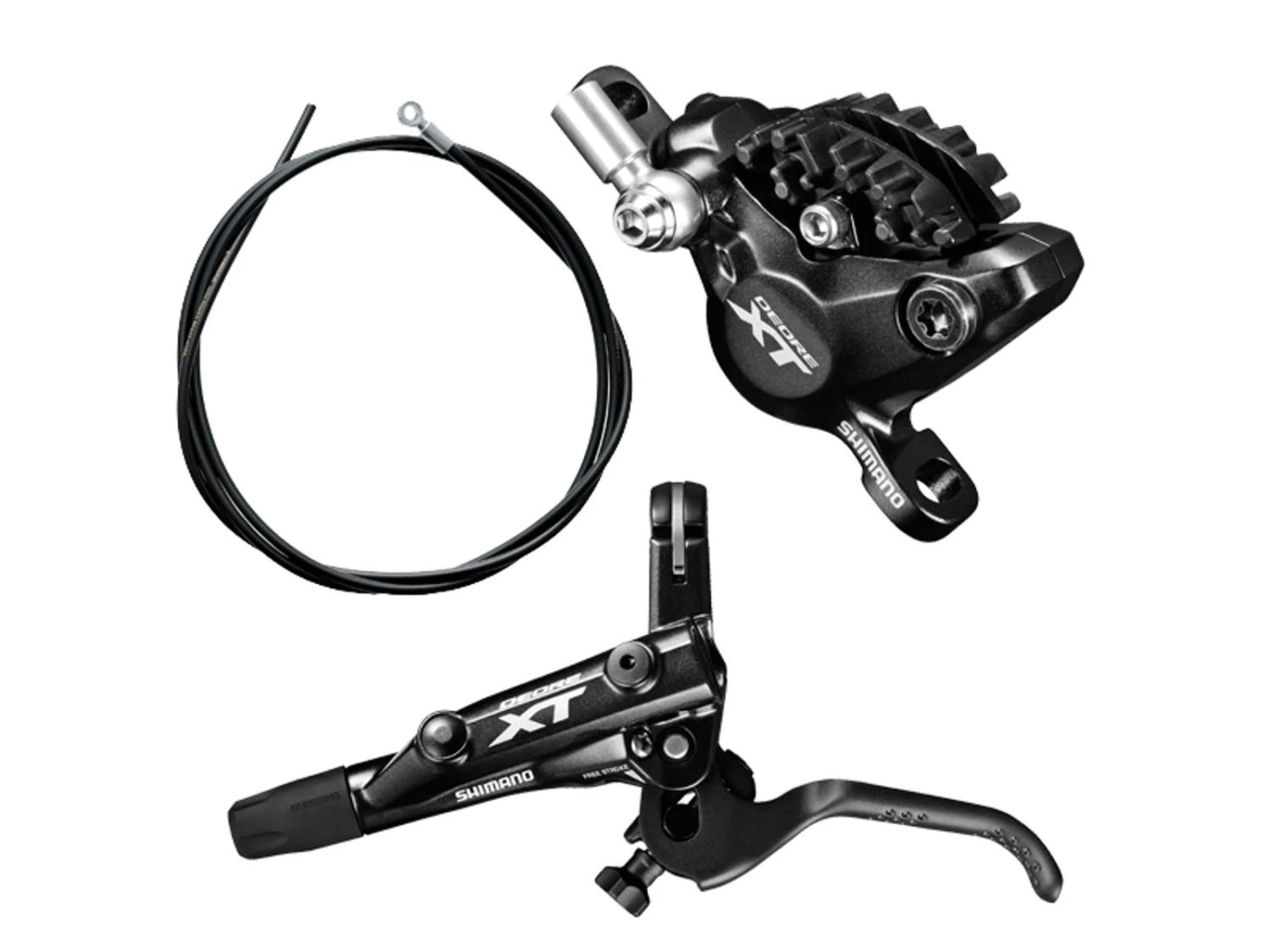 Shimano XT BL-M8000 är ett hydrauliskt frambroms-set, som består av bromsgrepp (fram/vänster), bromskaliber samt bromsslang. Bromsslangen är förmonterad och levereras inklusive påfylld olja. Det medföljer inte adapter till bromskaliber men den kan naturligtvis köpas till, omde behövs. Den rekommenderade rotorn till denna broms är Shimano SM-RT81.