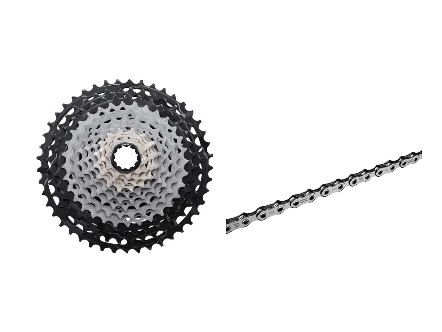 När du byter kassett måste du även byta kedja och du får båda delarna i detta paket. Setet består av Shimano XTR 12 växelkassett med växelområde 10-51 kugg och Shimano CN-M9101 kedja som passar där och inkluderar även Quick-Link kopplingslänk för kedjan.