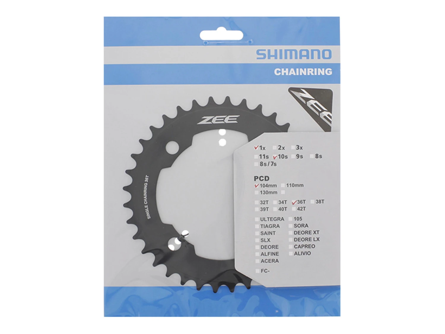 Det 36 tandbladet passar Shimano Zee enkelvevs modell FC-M640 som det yttersta läget och i kombination med 10 kugghjul med kugghjul.