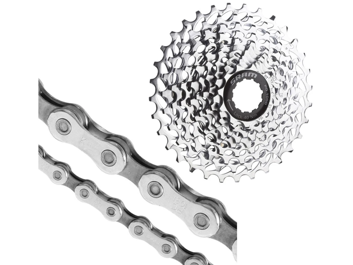 Sram sampak bestående av en PG-1050 10-växlad kassett med en 11-32 växel och en Sram PC-1031 kedja inkl. kopplare. Med ett Sram Power Pack är det enkelt och billigt att byta ut de vitala delarna av din cykelväxelkedja och kassett. Med denna sampak är du säker på att delarna passar ihop.