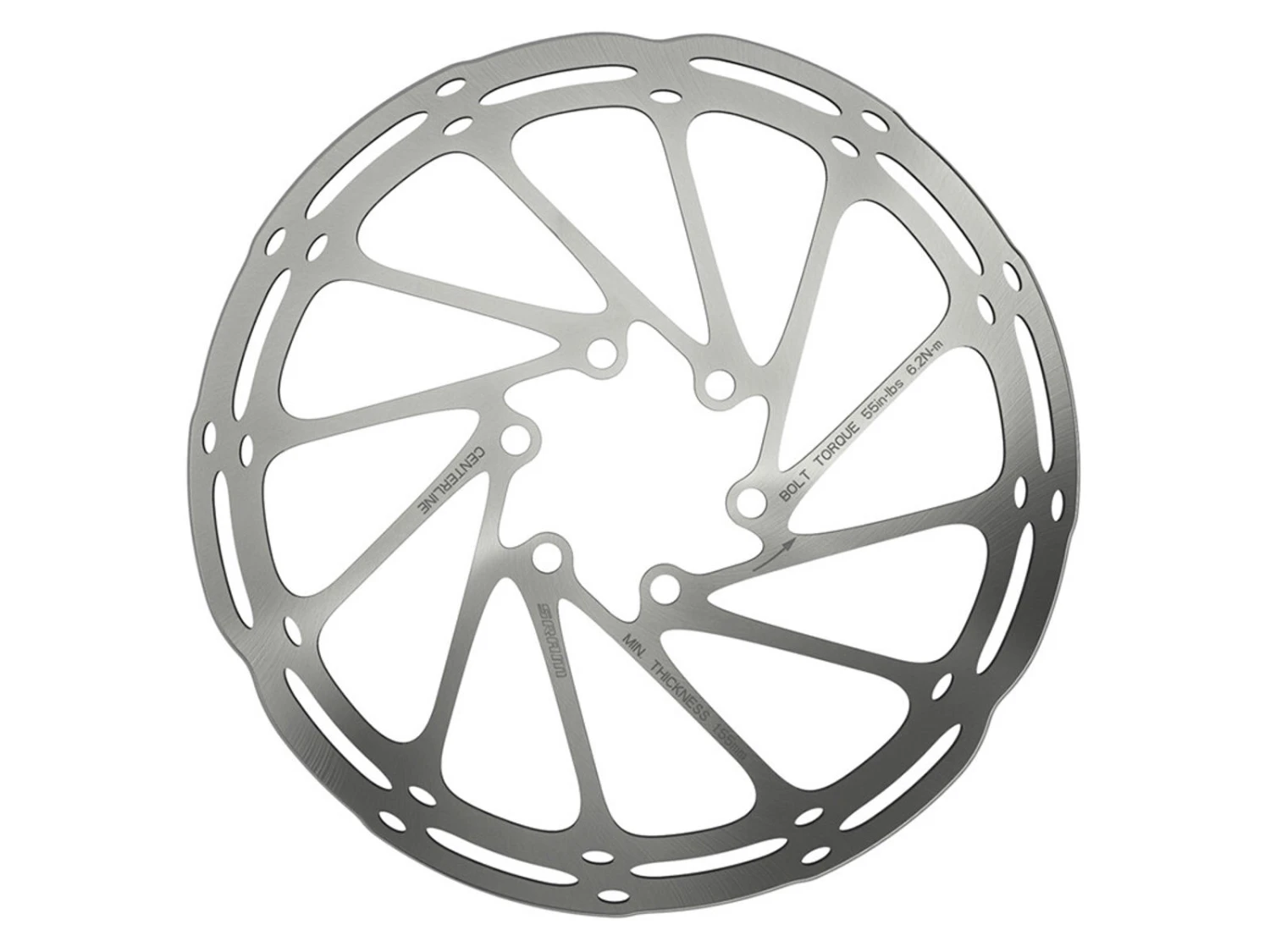 180 mm CenterLine -utformad bromsskiva ger en jämnare, mer konsekvent och tyst bromsyta. De rundade kanterna gör det lättare att installera dem på hjulet. Bromsskivan är UCI -kompatibel och kan användas för både MTB och vägcyklar.