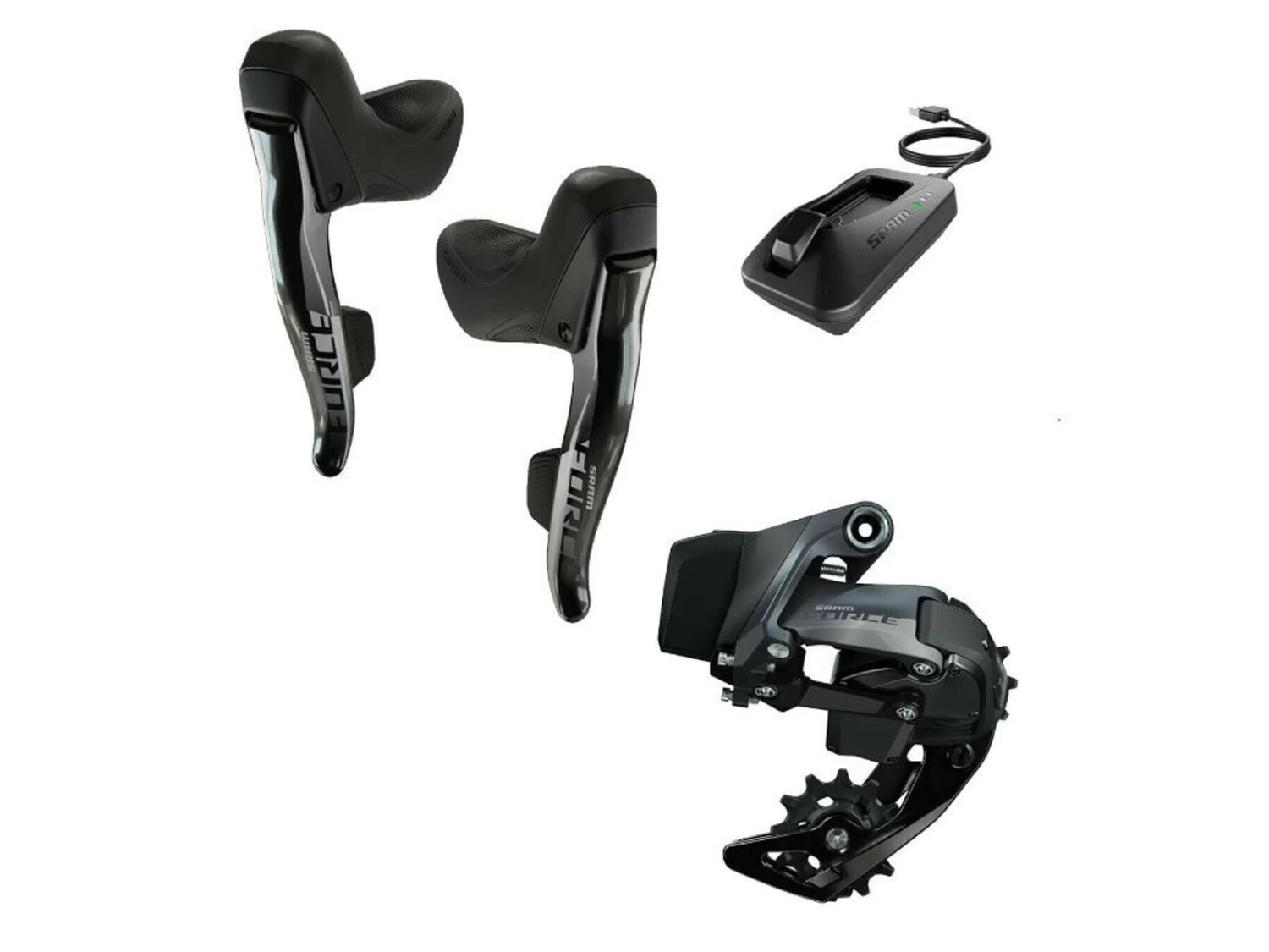 Här får du ett Sram Force eTap AXS 1X uppgraderingssats för 1×12 elektronisk växel. Satsen består av de delar du behöver för att uppgradera din nuvarande installation. dvs växlingsgrepp för 1×12 hastighet. Bakre omkopplare med batteri och laddare med sladd. Satsen är för kabeldragna bromsar – observera att bromsarna INTE ingår.