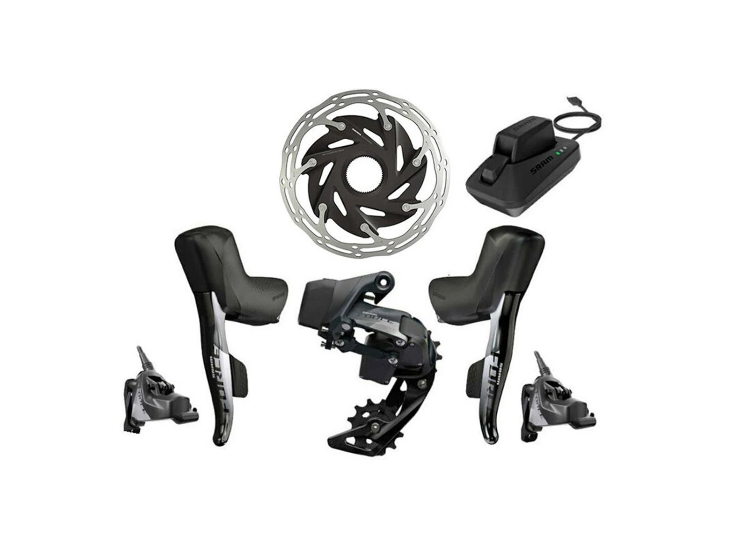 Du kan uppgradera din cykel till elektronisk växling med detta set från SRAM som är Force eTap AXS-modellen som används på landsvägscykeln. Satsen är avsedd för 1 x 12 växlar, elektronisk växling och bromsar av typen hydraulisk skivbroms.