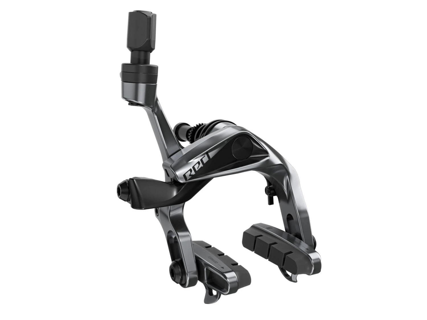 RED Falcon är en mekanisk toppbromssklöja från Sram för bakre tävlingscyklar och monterad via centerbult. Bromsgummi är utbytbart så att du inte behöver justera fronten när du bara byter gummi.