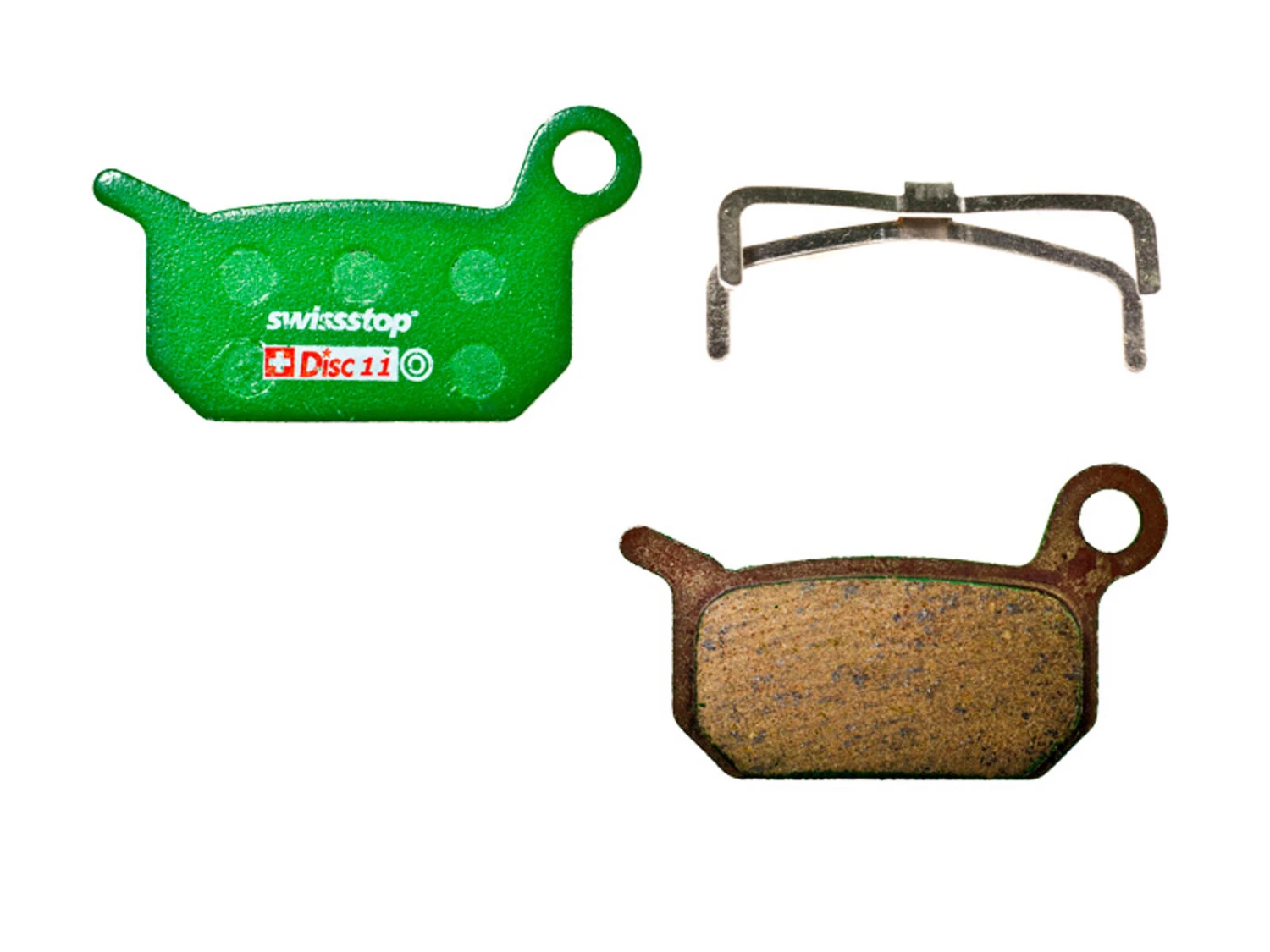 Dessa Swissstop Disc 11-bromsbelägg är bland de bästa på marknaden. SwissStop har utvecklat en speciell sammansättning av sina skivbromsbelägg med keramiska fibrer – Disc Organic Compounds. Dessa bromsbelägg tål upp till 450 ° C under bromsning. Under så extremt höga temperaturer skulle prestanda för de flesta andra bromsbelägg falla – men inte Swissstops. Slitaget på SwissStop Disc-bromsbelägg är både mycket lågt och jämnt, vilket också är anledningen till att Swissstop Disc-bromsbeläggs livslängd är så mycket längre än på vanliga skivbromsbelägg.