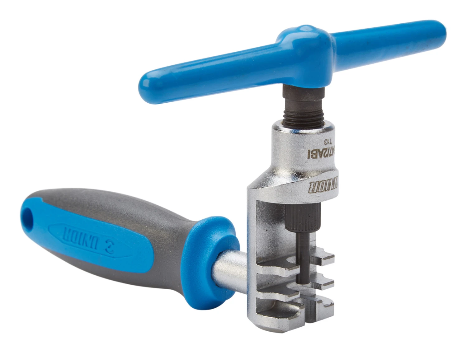 Uniors grundläggande hobbykedjeseparator är gjord av härdat stål, och alla grepp är doppade i skyddande plast för att ge dig ett bra grepp om verktyget. Observera att den professionella versionen av Unior kedjeseparator har möjlighet att byta ut stiftet när den bärs. Något du inte kan göra med billigare alternativ.