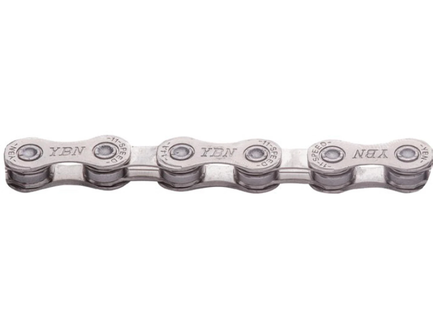 Med denna kedja är det möjligt att montera och separera kedjan utan att använda verktyg. YBN-kedjans yttre och inre länkar har utvecklats för att minimera friktionen under växlingen. Detta förhindrar kedjeförlust när du trampar bakåt.